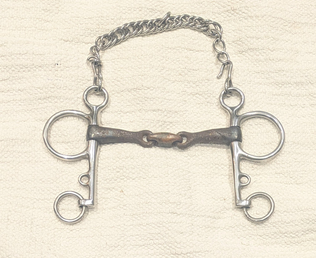 Pelham wiht double jointed sweet iron lozenge mouthpiece.