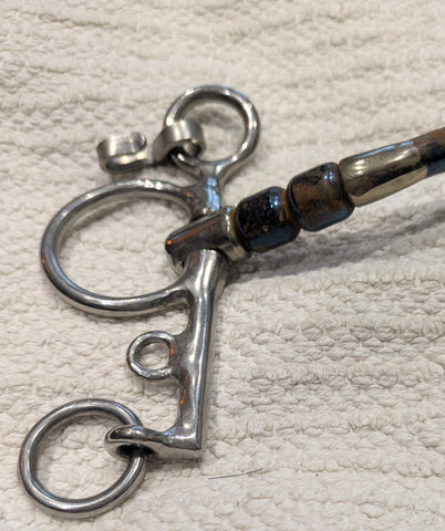 Super quality Pelham Bit with the popular happy tongue medium port mouthpiece, to give tongue relief. The additional cherry rollers are constructed tightly so there is no chance of pinching. They roll in the horses mouth giving him something to play with and reducing the likelihood of the bit being held in the horses teeth.