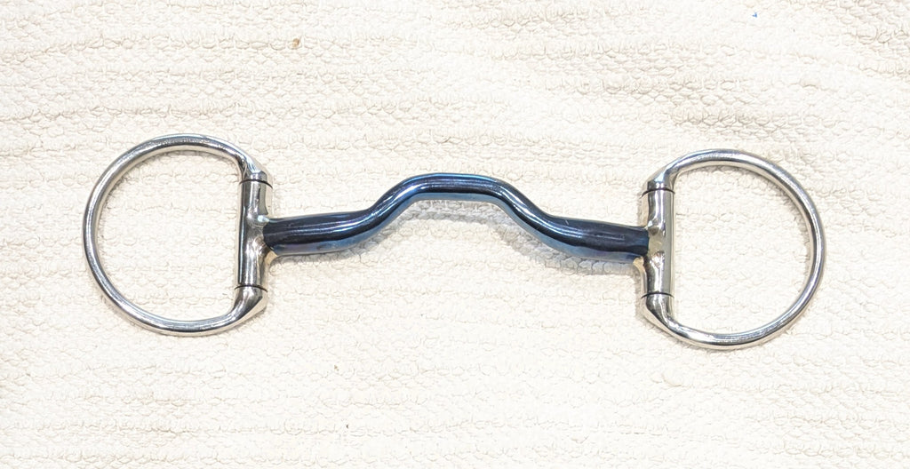 Elegant lightweight eggbutt snaffle with the bombers style happy tongue mouthpiece. It has the shaped port offering tongue relief and the eggbutt cheek piece prevents pinching of the lips. The mouthpiece is blue sweet iron and will oxidise with use.