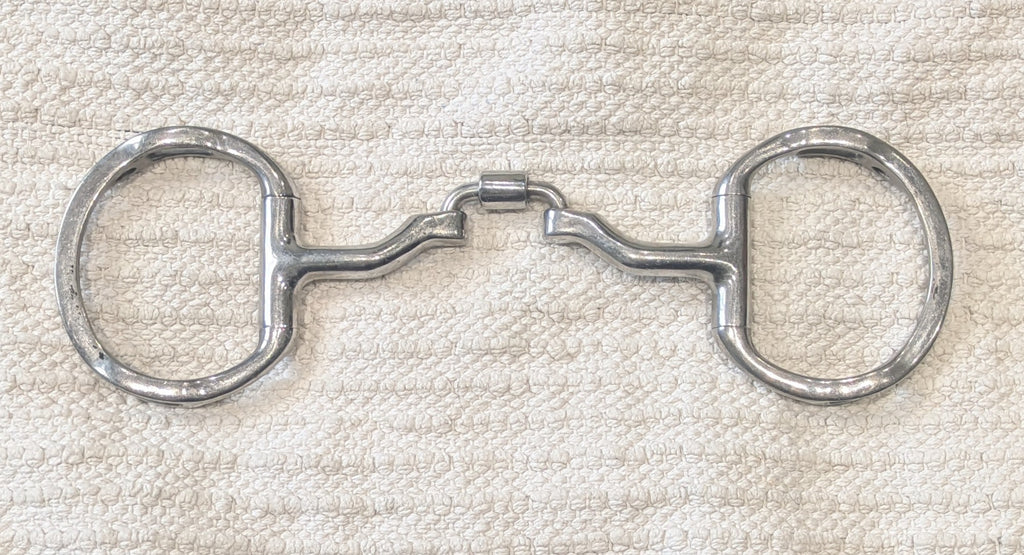 This is a curved mouthpiece with an upward and forward bend, two hinges and a centre piece with barrel that acts as the fixing point for the two independent side movement parts of the bit that wrap the bars and lips of the horses mouth. There's no restriction in degree of collapse. This offers lots of tongue relief to the compliant horse but will put downward pressure on top of bars when activated, followed by downward pressure on tongue and inward collapse on bars.