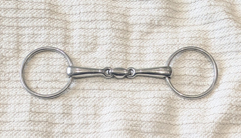 Classic double jointed loose ring snaffle with central lozenge.