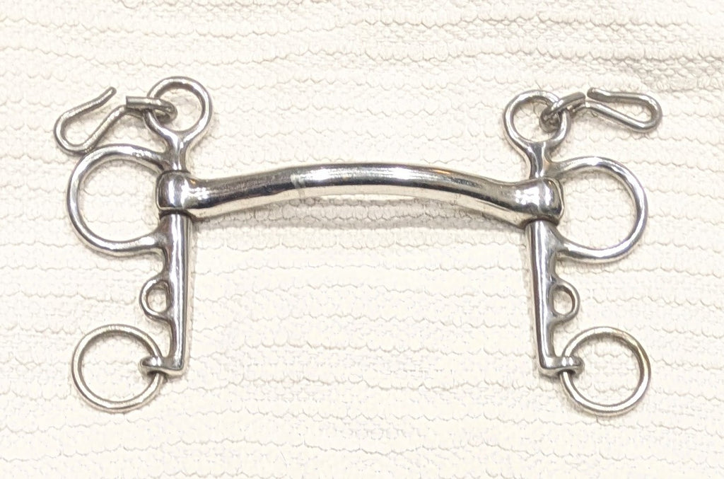 Quality stainless steel pelham with curved mullen mouth. 7cm shank.